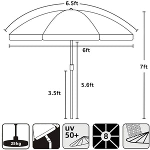 Dimensions: 45.0 x 5.5 x 5.5 inches; pole diameter: 1.25 inches, which fits in the e-Beach Wagon's built-in pole holders