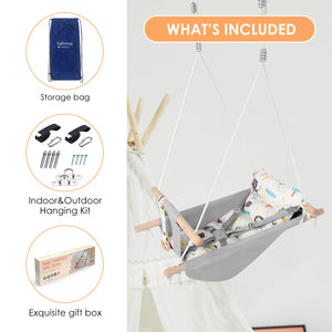 Gladswing prioritizes safety, meeting CPSIA standards with rigorous testing. A safety belt ensures your baby stays secure. Suitable for ages 12 months to 3 years (height range: 1’9.7”–3’3.37”). Never leave your child unattended in the swing.